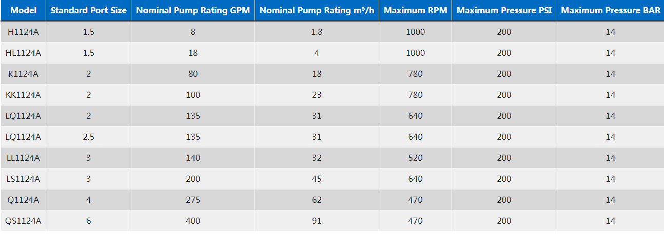 1124A系列™ 采用O-Pro®密封技術(shù)的內(nèi)部齒輪泵是粘合劑、淀粉、聚合物等的完美解決方案,因為它具有可靠的密封和易于維護。它可以處理8至400 GPM(1.8至91 m³/h)的流量。