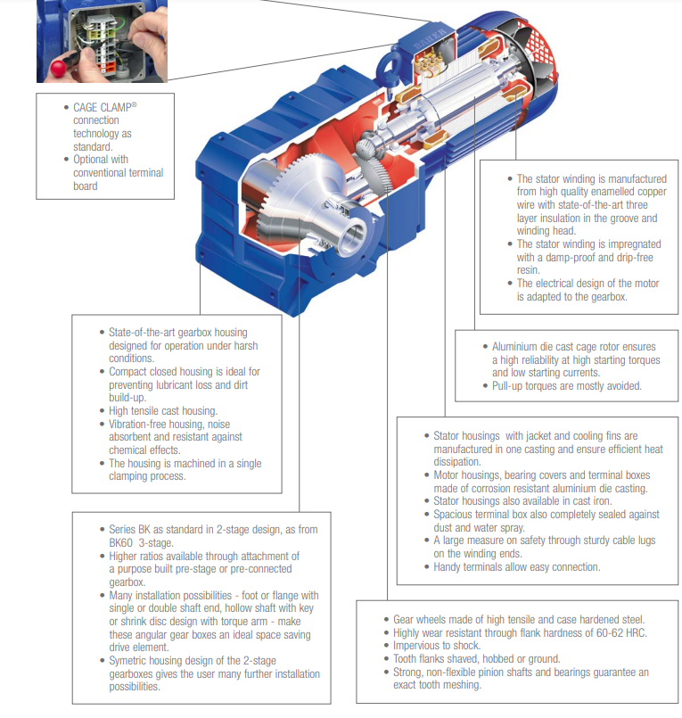 BG 系列減速電機是我們最暢銷和最經(jīng)濟合算的產(chǎn)品,為可靠性與經(jīng)濟性樹立了新標(biāo)準(zhǔn),其中包括諸多無與倫比的標(biāo)準(zhǔn)功能與特點。逆變器友好型設(shè)計不僅可確保目前輕松集成,而且還能滿足未來需求。標(biāo)配有確保與您的應(yīng)用輕松集成的英制或公制尺寸輸出軸。BG 減速電機擁有靈活的安裝選件,包括支腳、基座、表面與法蘭解決方案。電機接線盒可以安裝在圍繞電機架旋轉(zhuǎn) 90° 的其他位置,實現(xiàn)無與倫比的集成可能性。